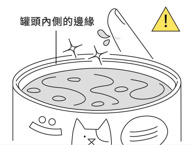 請注意避免被蓋子的邊緣、罐頭內側的邊緣割傷。請將罐頭與蓋子分開。